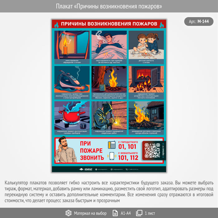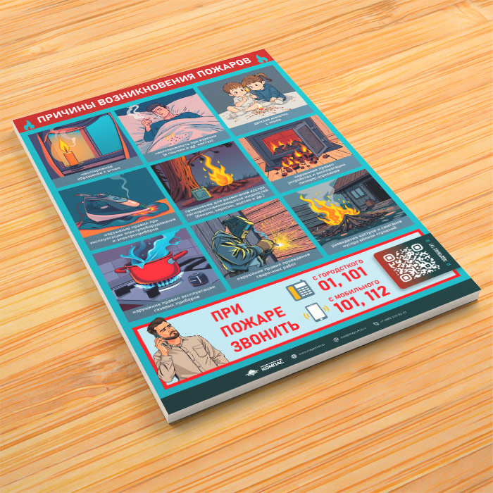 Плакат «Причины возникновения пожаров» с QR (М-144, 1 лист) в Альметьевске купить