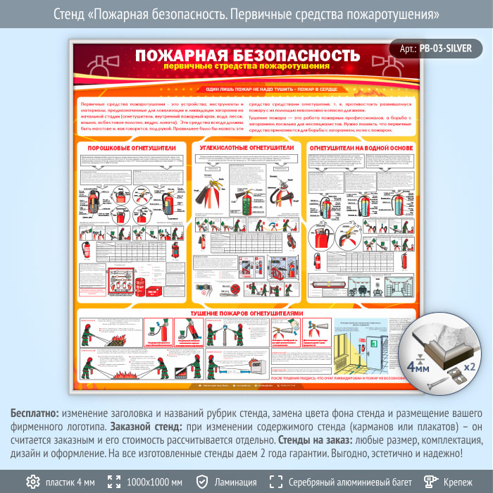 Стенд «Пожарная безопасность. Первичные средства пожаротушения» (PB-03-SILVER) в Альметьевске купить