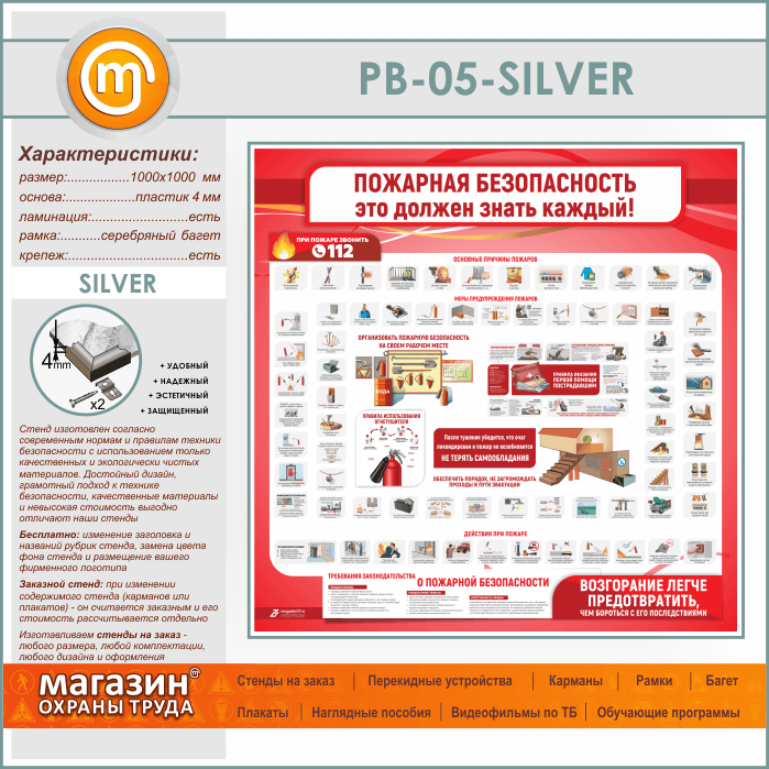 Стенд «Пожарная безопасность. Это должен знать каждый» (PB-05-SILVER) в Альметьевске купить