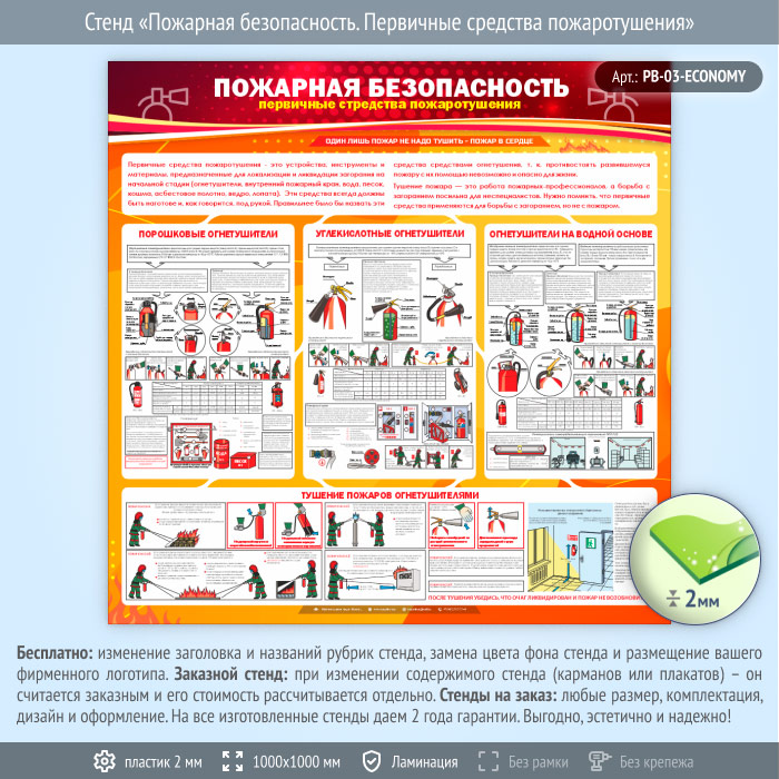 Стенд «Пожарная безопасность. Первичные средства пожаротушения» (PB-03-ECONOMY) в Альметьевске купить