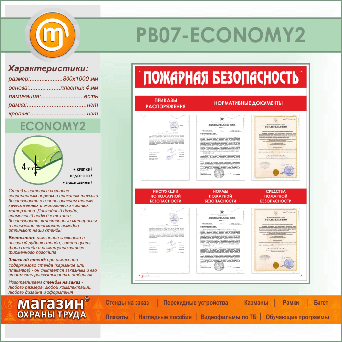Стенд «Пожарная безопасность» с 6 карманами (PB-07-ECONOMY2) в Альметьевске купить