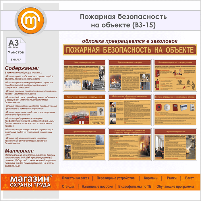 Плакаты «Пожарная безопасность на объекте» (ВЗ-15, бумага, А3, 10 листов) в Альметьевске купить