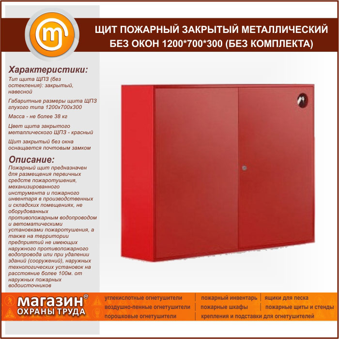Щит пожарный закрытый металлический без окон 1200*700*300 (без комплекта) в Альметьевске купить