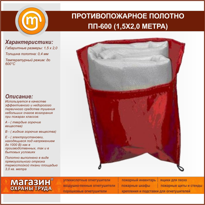 Противопожарное полотно ПП-600 (1, 5х2, 0 метра) в Альметьевске купить