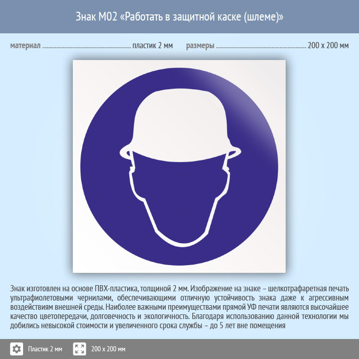 Знак M02 «Работать в защитной каске (шлеме)» (пластик, 200х200 мм) в Альметьевске купить
