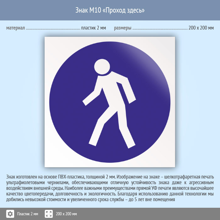Знак M10 «Проход здесь» (пластик, 200х200 мм) в Альметьевске купить