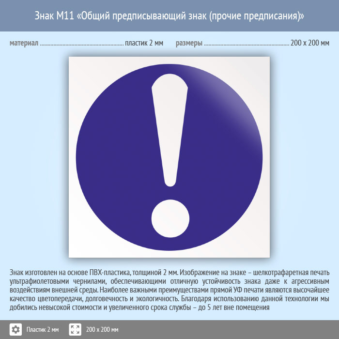 Знак M11 «Общий предписывающий знак (прочие предписания)» (пластик, 200х200 мм) в Альметьевске купить