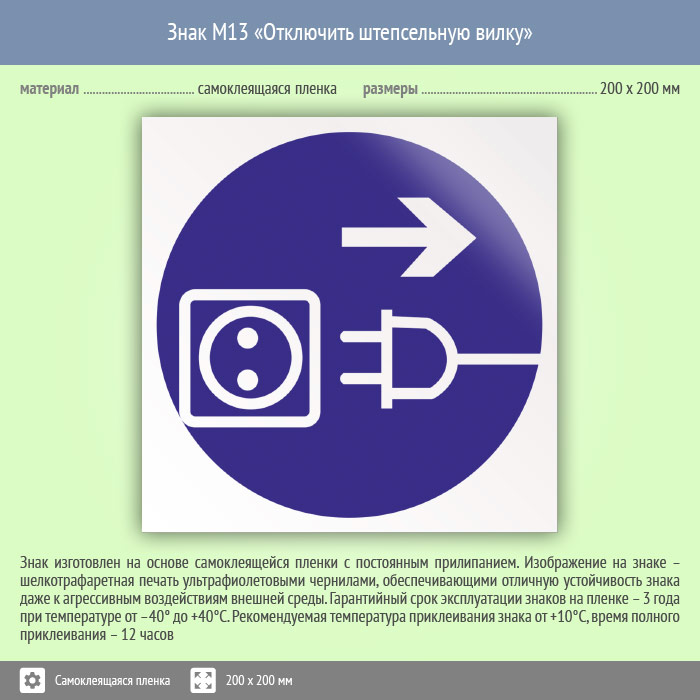 Знак M13 «Отключить штепсельную вилку» (пленка, 200х200 мм) в Альметьевске купить