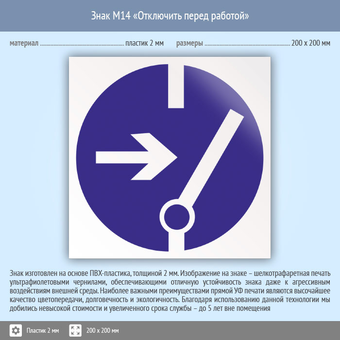 Знак M14 «Отключить перед работой» (пластик, 200х200 мм) в Альметьевске купить