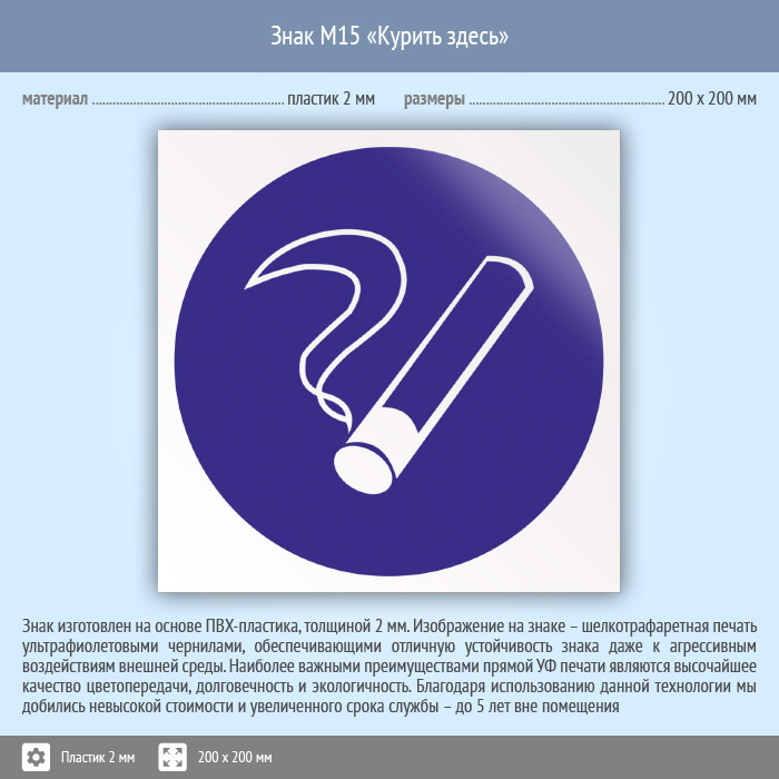 Знак M15 «Курить здесь» (исключен) (пластик, 200х200 мм) в Альметьевске купить