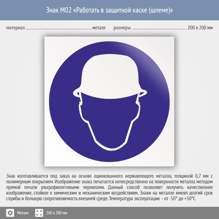 Знак M02 «Работать в защитной каске (шлеме)» (металл, 200х200 мм) в Альметьевске купить
