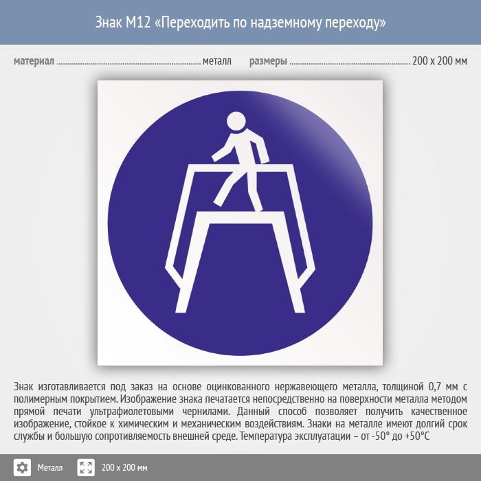 Знак M12 «Переходить по надземному переходу» (металл, 200х200 мм) в Альметьевске купить