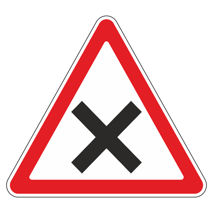Дорожный знак 1.6 «Пересечение равнозначных дорог» (металл 0,8 мм, III типоразмер: сторона 1200 мм, С/О пленка: тип Б высокоинтенсивная) в Альметьевске купить