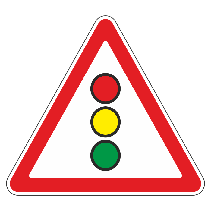 Дорожный знак 1.8 «Светофорное регулирование» (металл 0,8 мм, IV типоразмер: сторона 1500 мм, С/О пленка: тип В алмазная) в Альметьевске купить