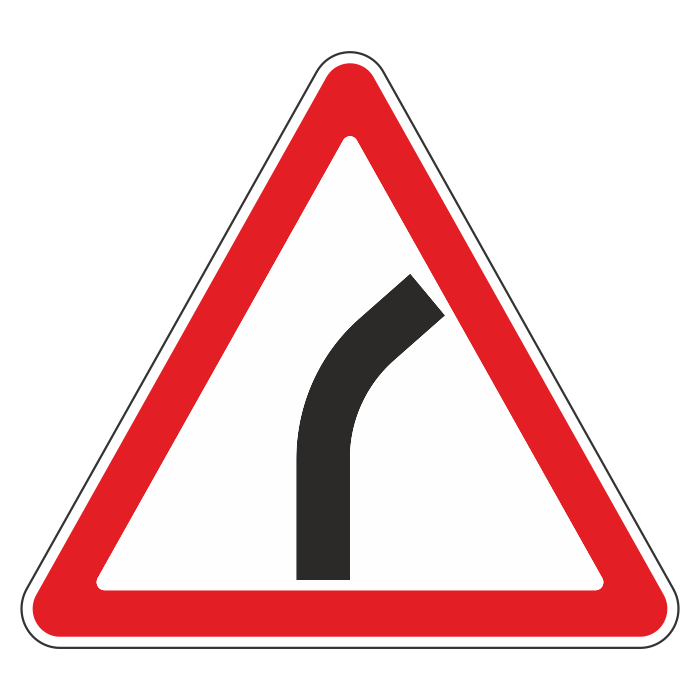 Дорожный знак 1.11.1 «Опасный поворот направо» (металл 0,8 мм, I типоразмер: сторона 700 мм, С/О пленка: тип Б высокоинтенсивная) в Альметьевске купить