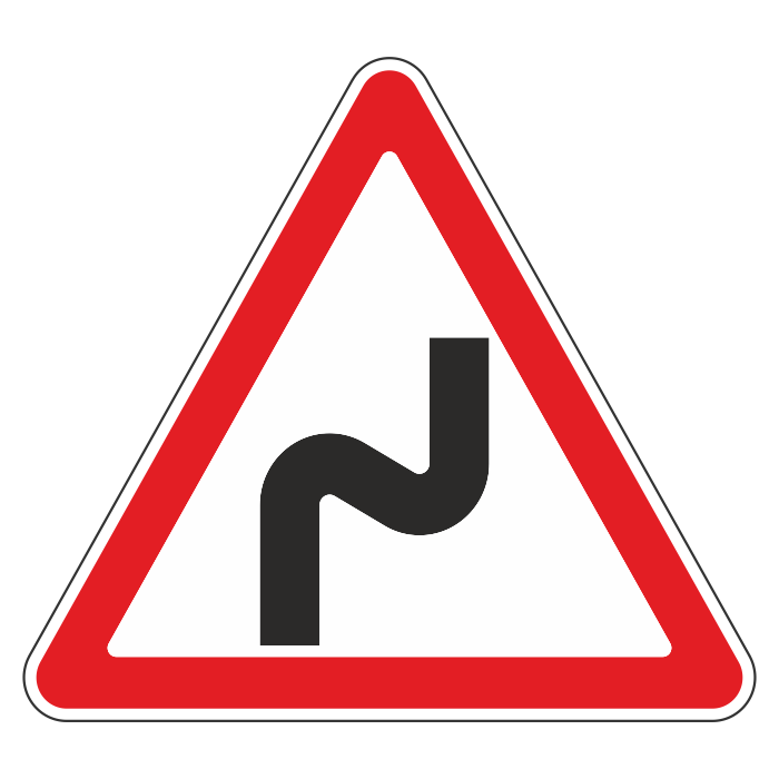 Дорожный знак 1.12.1 «Опасные повороты с первым поворотом направо» (металл 0,8 мм, III типоразмер: сторона 1200 мм, С/О пленка: тип А коммерческая) в Альметьевске купить