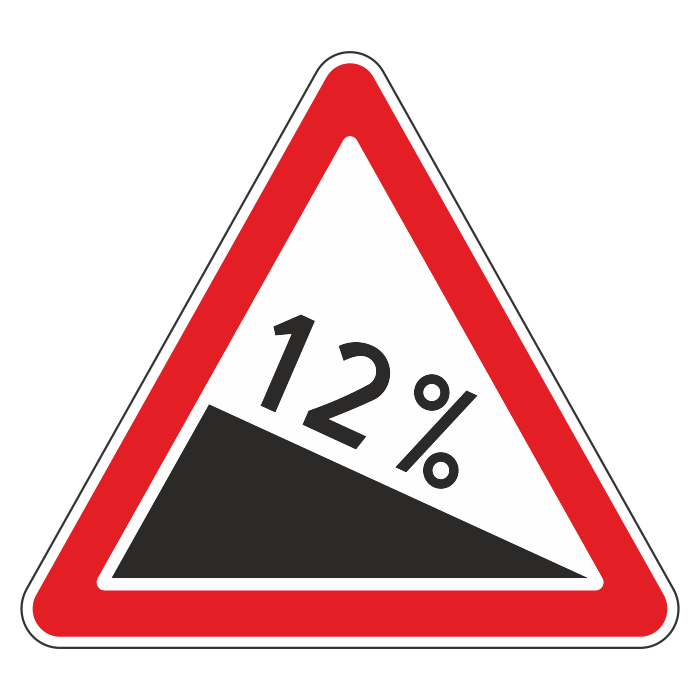 Дорожный знак 1.13 «Крутой спуск» (металл 0,8 мм, I типоразмер: сторона 700 мм, С/О пленка: тип А инженерная) в Альметьевске купить