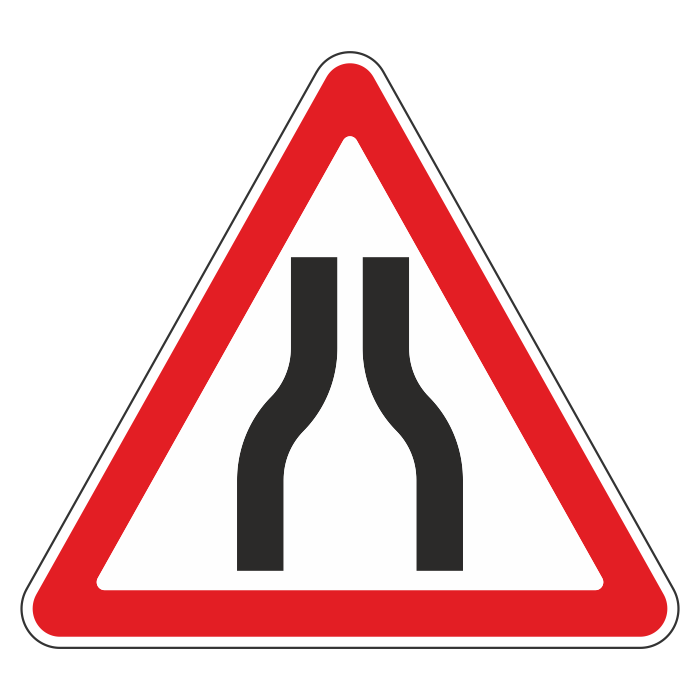 Дорожный знак 1.20.1 «Сужение дороги» (металл 0,8 мм, III типоразмер: сторона 1200 мм, С/О пленка: тип Б высокоинтенсивная) в Альметьевске купить