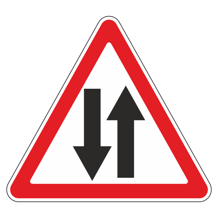 Дорожный знак 1.21 «Двустороннее движение» (металл 0,8 мм, I типоразмер: сторона 700 мм, С/О пленка: тип В алмазная) в Альметьевске купить