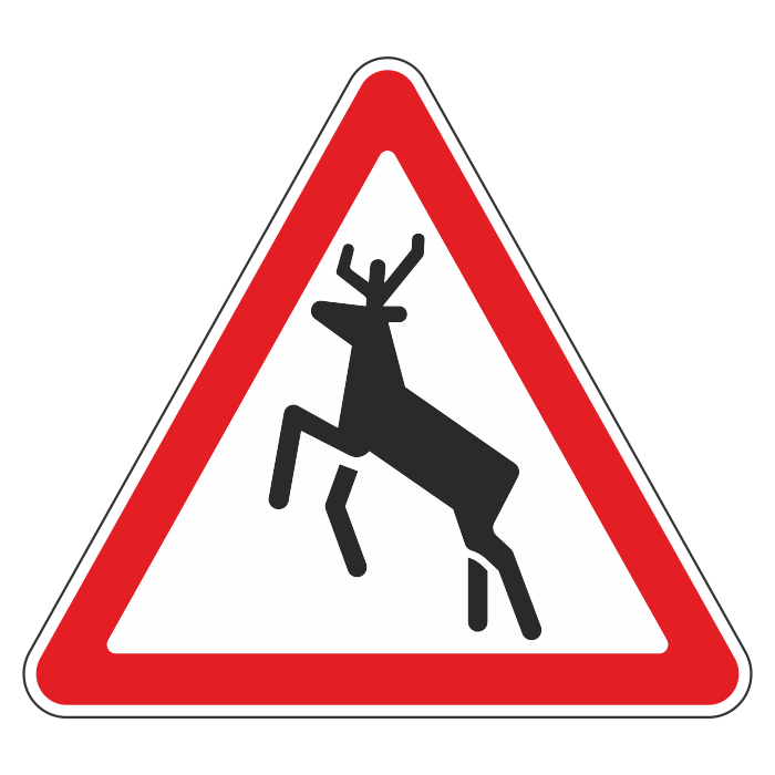 Дорожный знак 1.27 «Дикие животные» (металл 0,8 мм, III типоразмер: сторона 1200 мм, С/О пленка: тип В алмазная) в Альметьевске купить