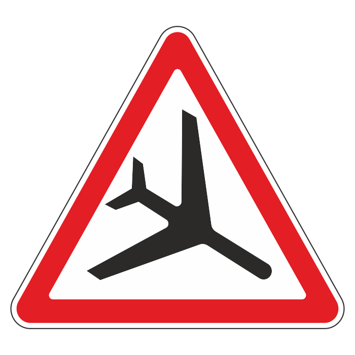Дорожный знак 1.30 «Низколетящие самолеты» (металл 0,8 мм, III типоразмер: сторона 1200 мм, С/О пленка: тип Б высокоинтенсивная) в Альметьевске купить