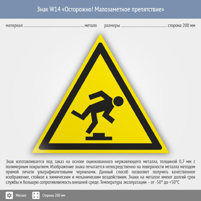 Знак W14 «Осторожно! малозаметное препятствие» (металл, сторона 200 мм) в Альметьевске купить