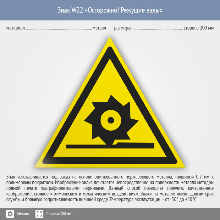 Знак W22 «Осторожно! режущие валы» (металл, сторона 200 мм) в Альметьевске купить
