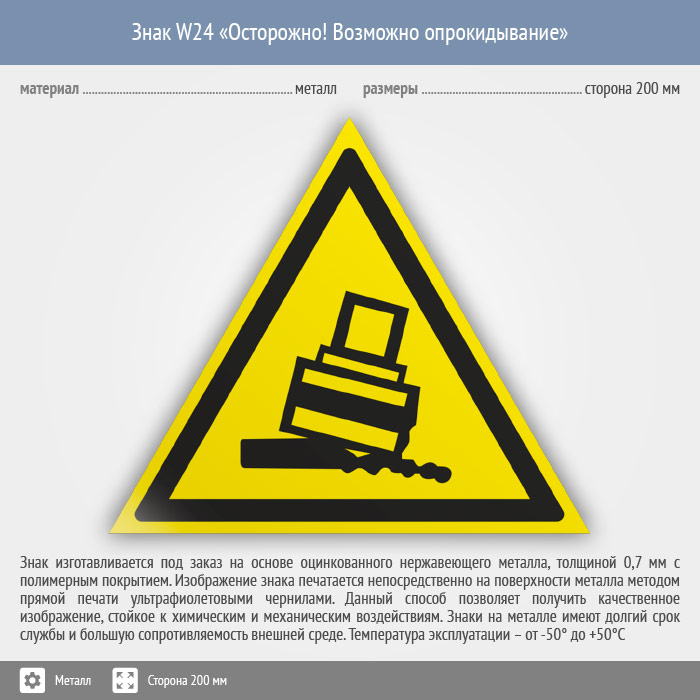 Знак W24 «Осторожно! возможно опрокидывание» (металл, сторона 200 мм) в Альметьевске купить