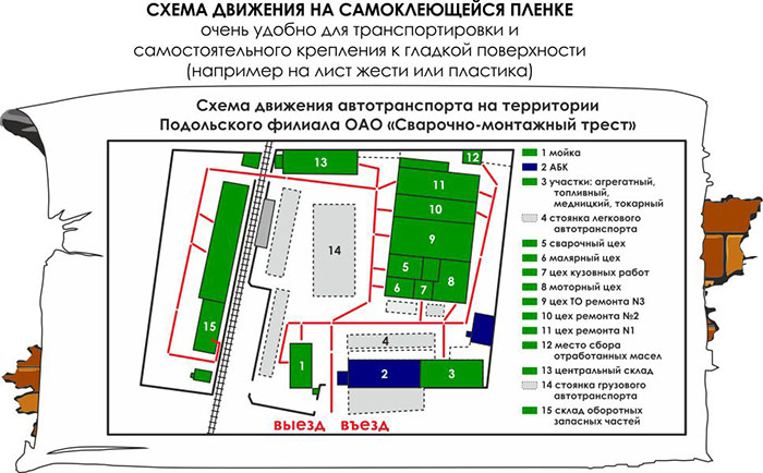 Схема движения автотранспорта (3000х1500 мм, самоклеящаяся плёнка) в Альметьевске купить