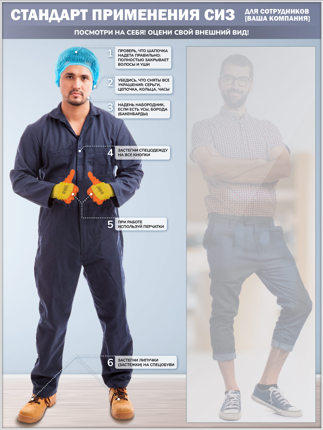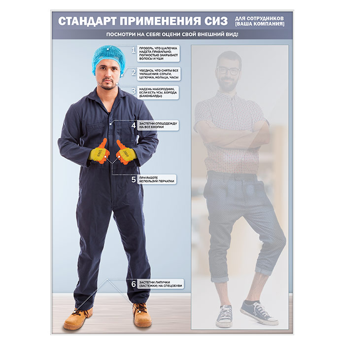 Стенд для демонстрации применения СИЗ с зеркалом, 1500х2000 мм в серебряном багете (СПС-02-С) в Альметьевске купить