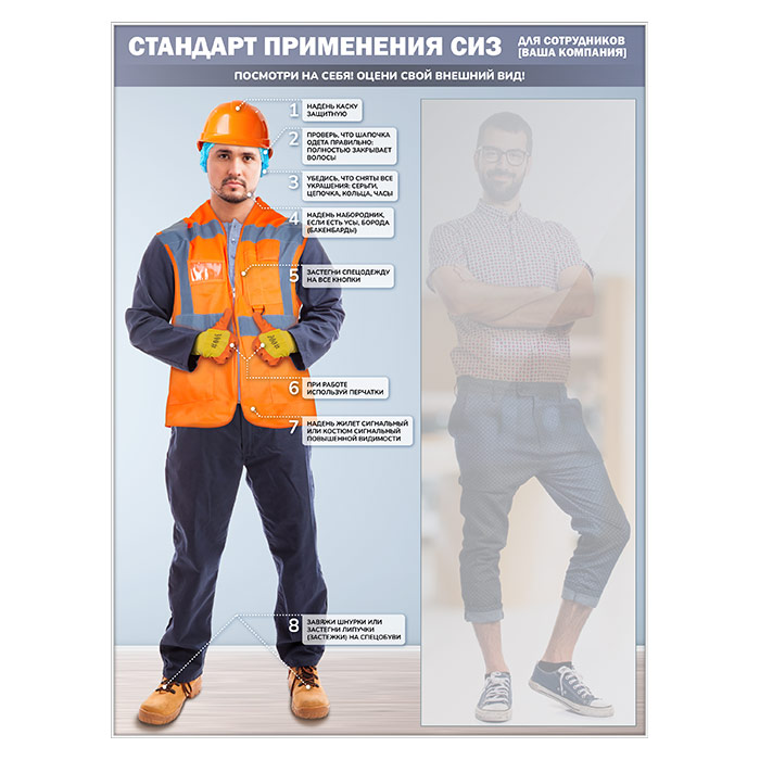 Стенд для демонстрации применения СИЗ с зеркалом, 1500х2000 мм в серебряном багете (СПС-03-С) в Альметьевске купить