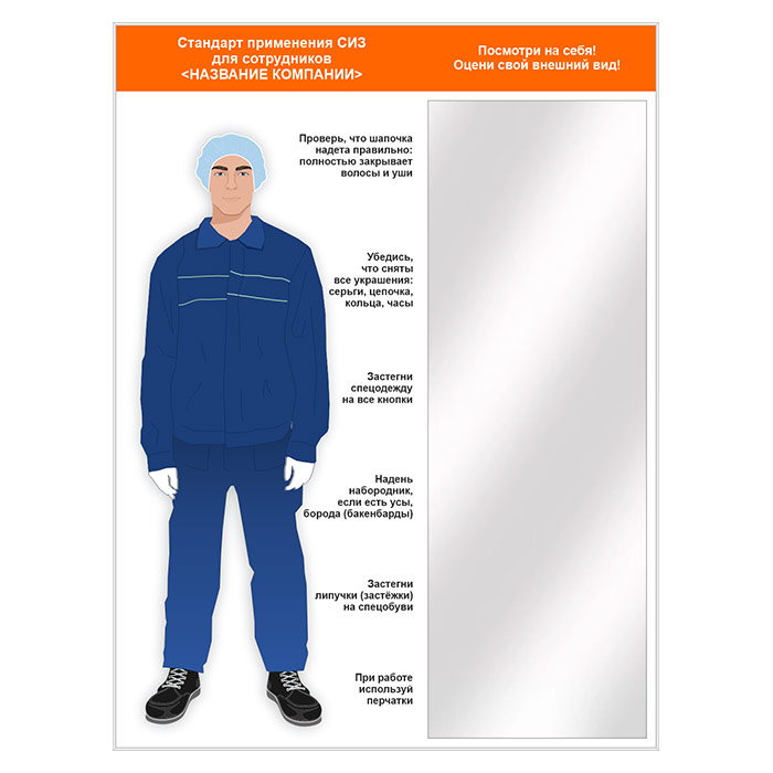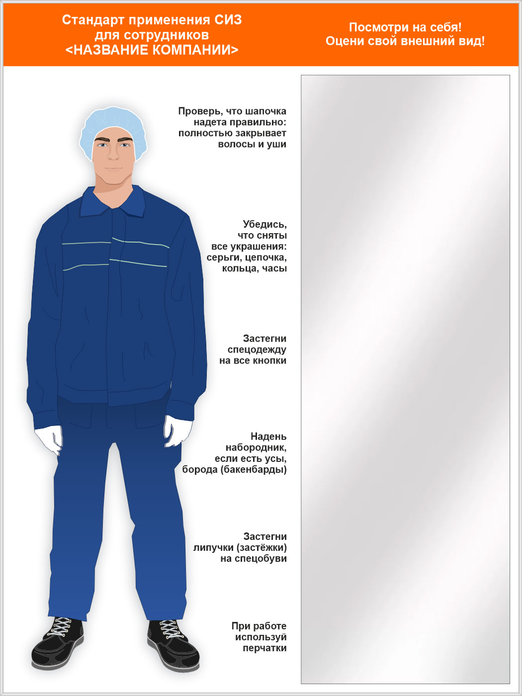 Стенд для демонстрации применения СИЗ с зеркалом, 1500х2000 мм в серебряном багете (СПС-03.2-С) в Альметьевске купить