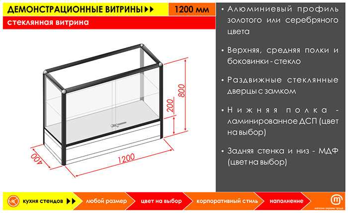 Стеклянная витрина, 1200 мм в Альметьевске купить