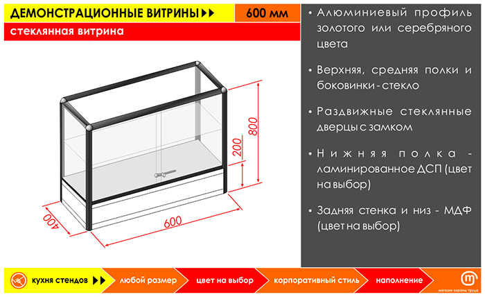 Стеклянная витрина, 600 мм в Альметьевске купить