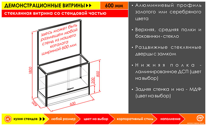 Стеклянная витрина со стендовой частью, 600 мм в Альметьевске купить