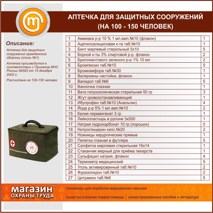Аптечка для Защитных Сооружений (на 100 - 150 человек) - сумка в Альметьевске купить