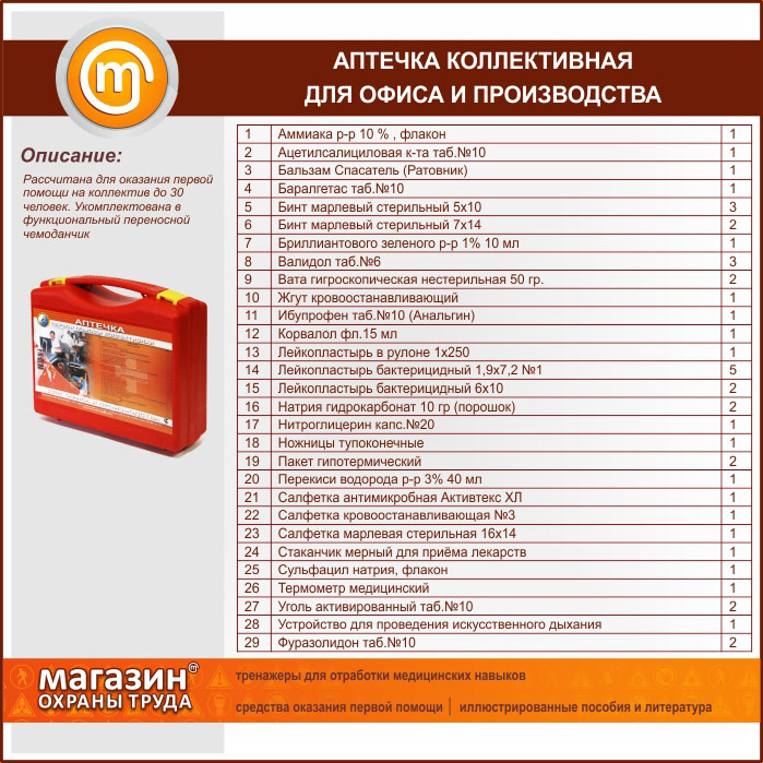 Аптечка КОЛЛЕКТИВНАЯ для офиса и производства (до 30 человек) - пластиковый чемодан в Альметьевске купить