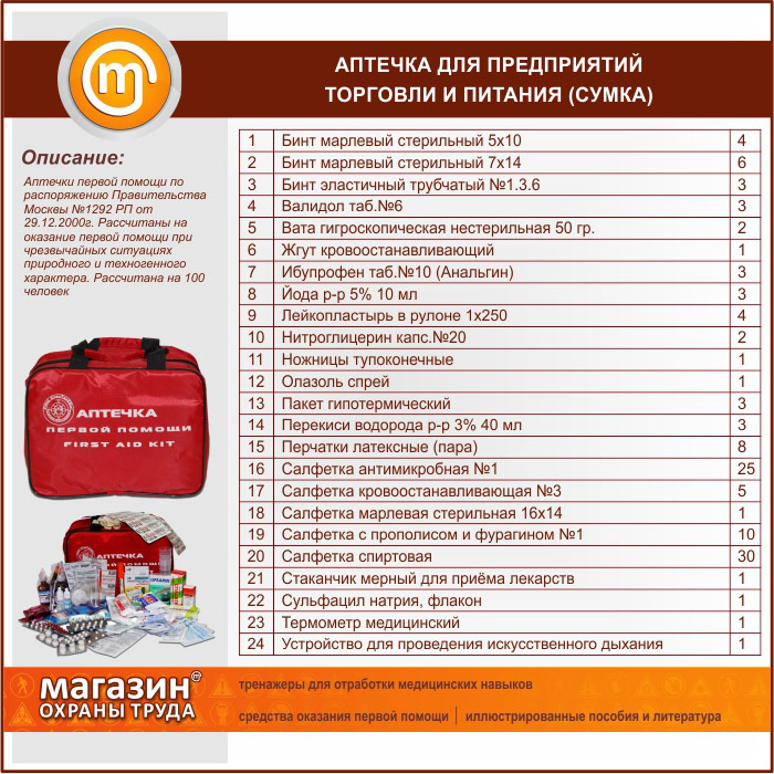 Аптечка для предприятий торговли и питания - (на 100 человек) - сумка | Аптечка для предприятий торговли и питания - (на 100 человек) - сумка |