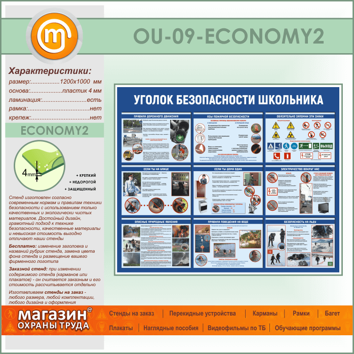 Стенд «Уголок безопасности школьника» (OU-09-ECONOMY2) в Альметьевске купить