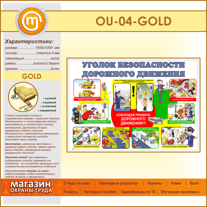 Стенд «Уголок безопасности дорожного движения» (OU-04-GOLD) в Альметьевске купить