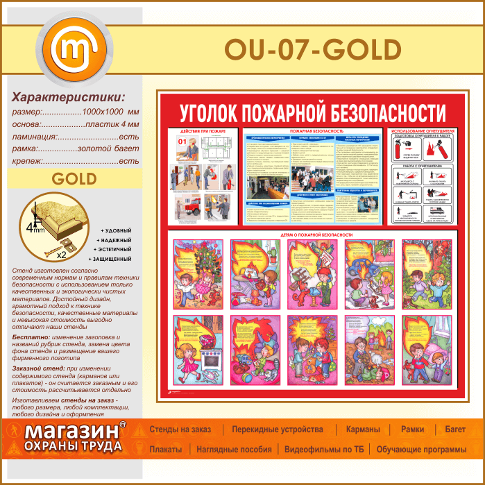 Стенд «Уголок пожарной безопасности» (OU-07-GOLD) в Альметьевске купить