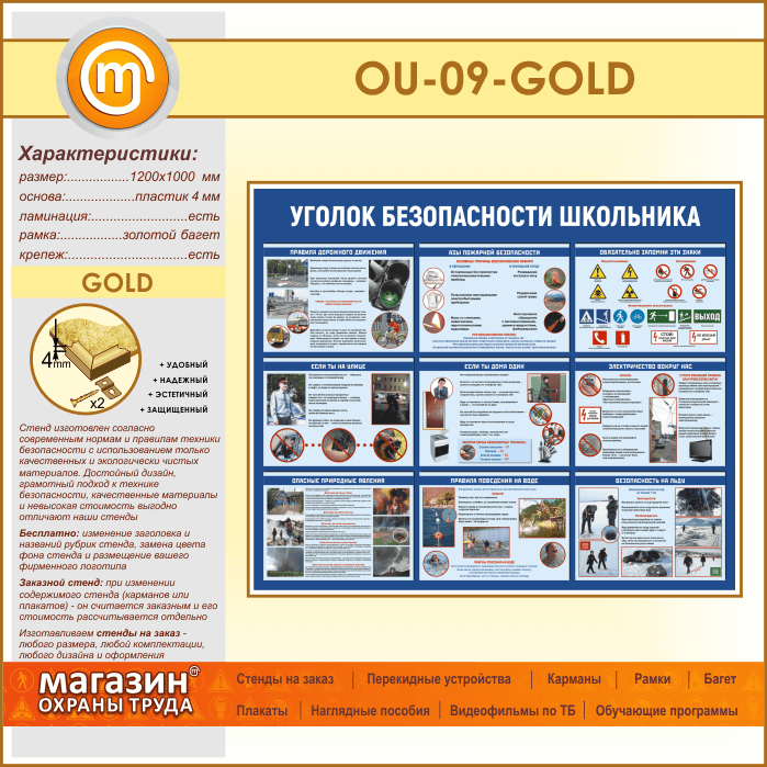 Стенд «Уголок безопасности школьника» (OU-09-GOLD) в Альметьевске купить