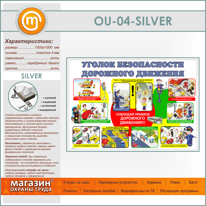 Стенд «Уголок безопасности дорожного движения» (OU-04-SILVER) в Альметьевске купить