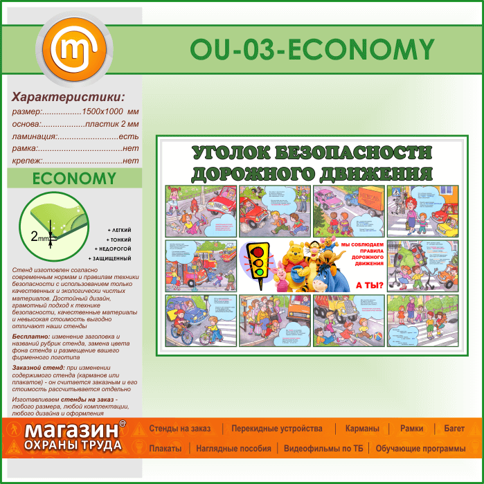 Стенд «Уголок безопасности дорожного движения» (OU-03-ECONOMY) в Альметьевске купить