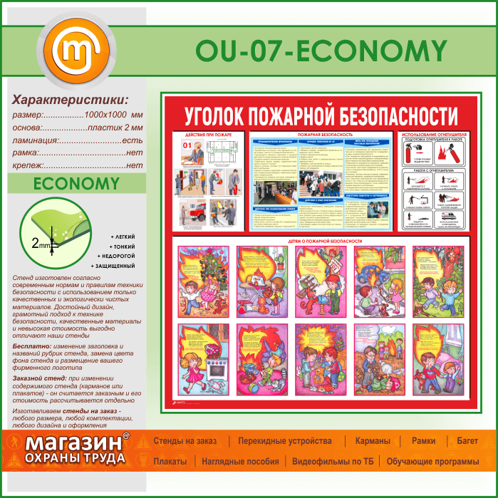 Стенд «Уголок пожарной безопасности» (OU-07-ECONOMY) в Альметьевске купить