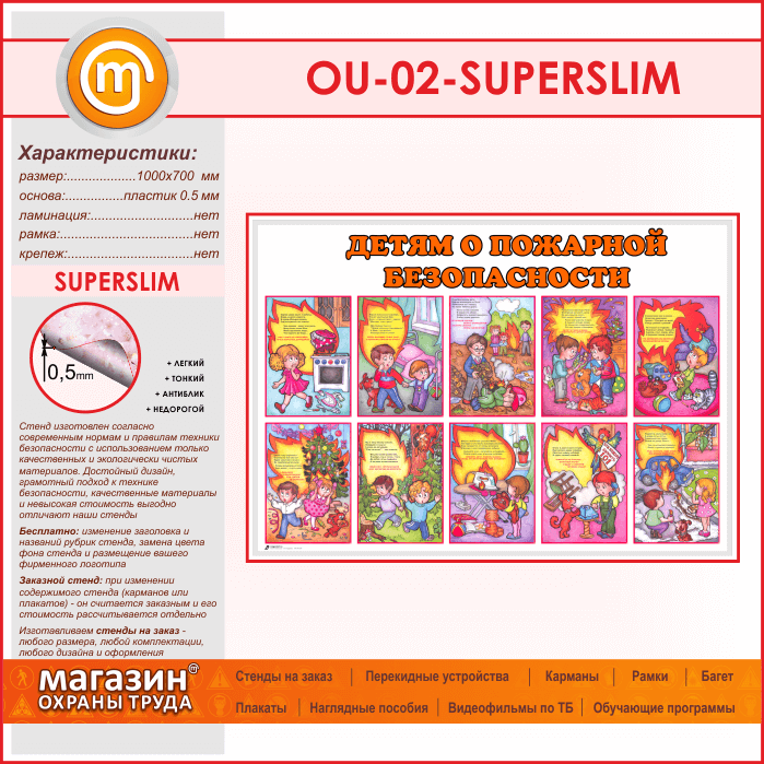 Стенд «Детям о пожарной безопасности» (OU-02-SUPERSLIM) в Альметьевске купить