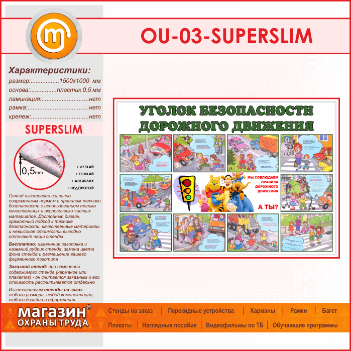 Стенд «Уголок безопасности дорожного движения» (OU-03-SUPERSLIM) в Альметьевске купить