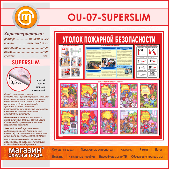 Стенд «Уголок пожарной безопасности» (OU-07-SUPERSLIM) в Альметьевске купить