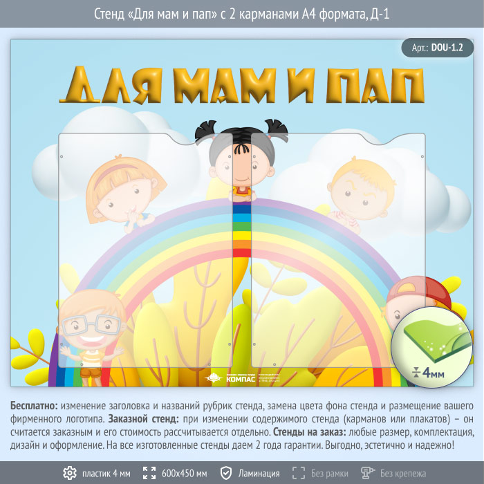 Стенд «Для мам и пап» с 2 карманами А4 формата (DOU-1.2) в Альметьевске купить