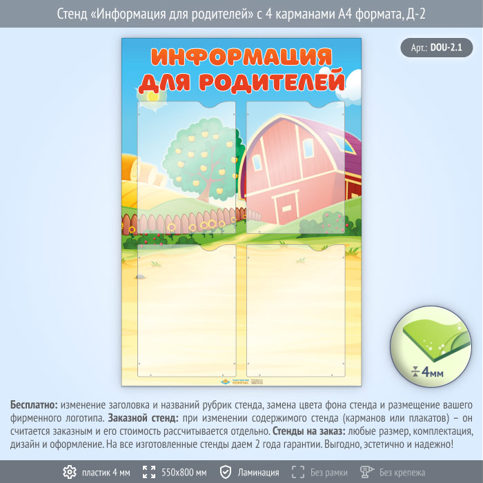 Стенд «Информация для родителей» с 4 карманами А4 формата (DOU-2.1) в Альметьевске купить